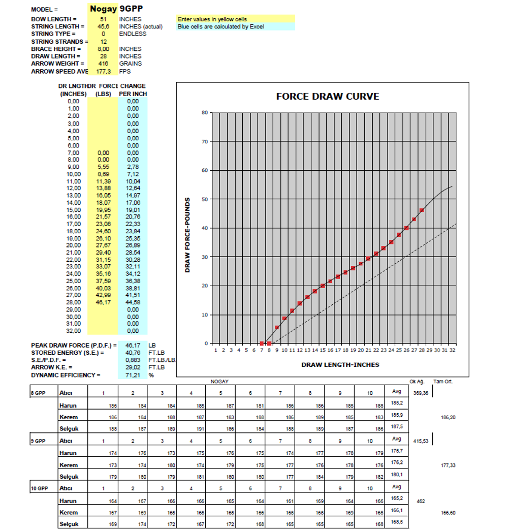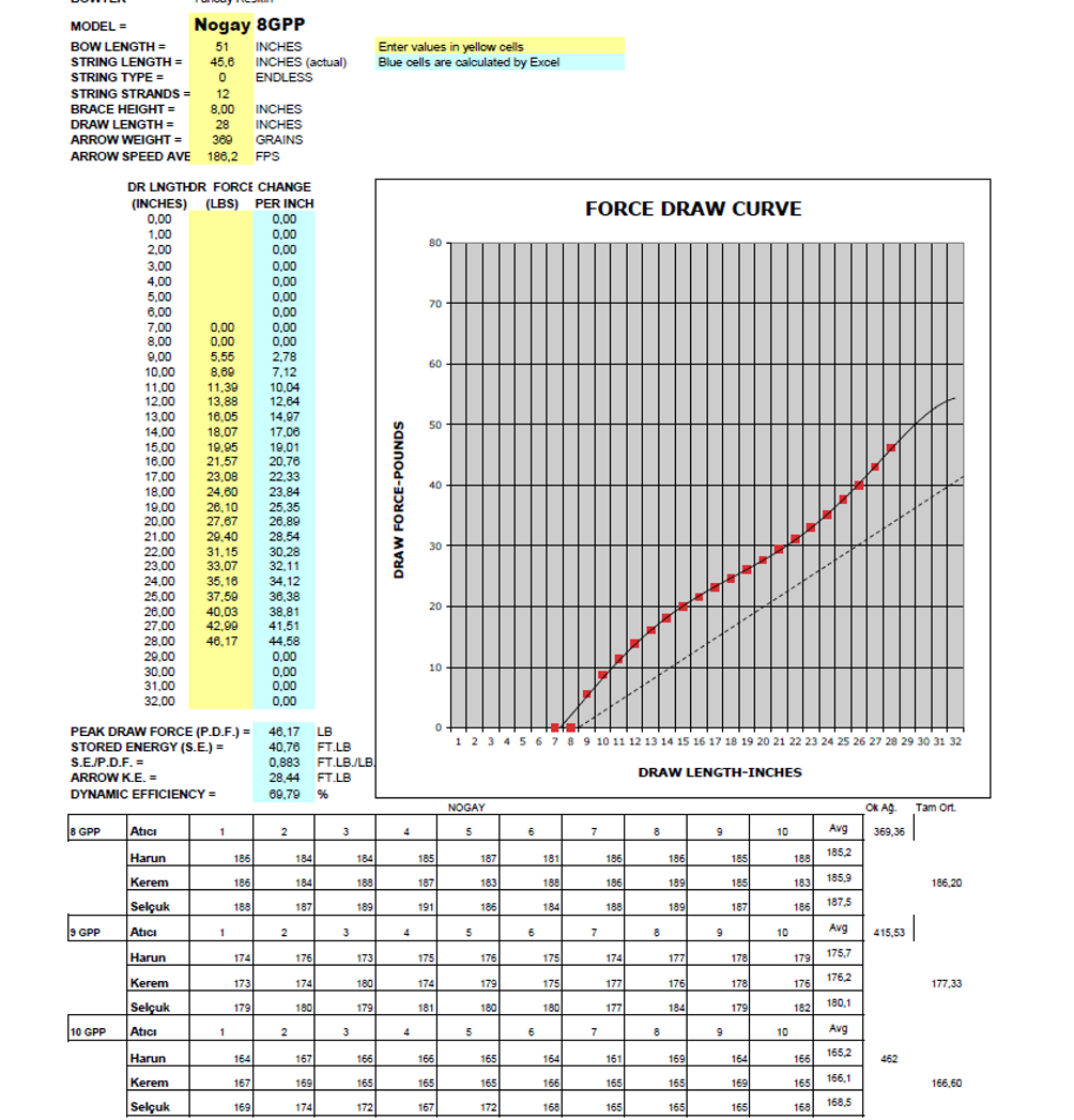 | Kullanılacak okların GPP aralığı | 8-10 GPP |